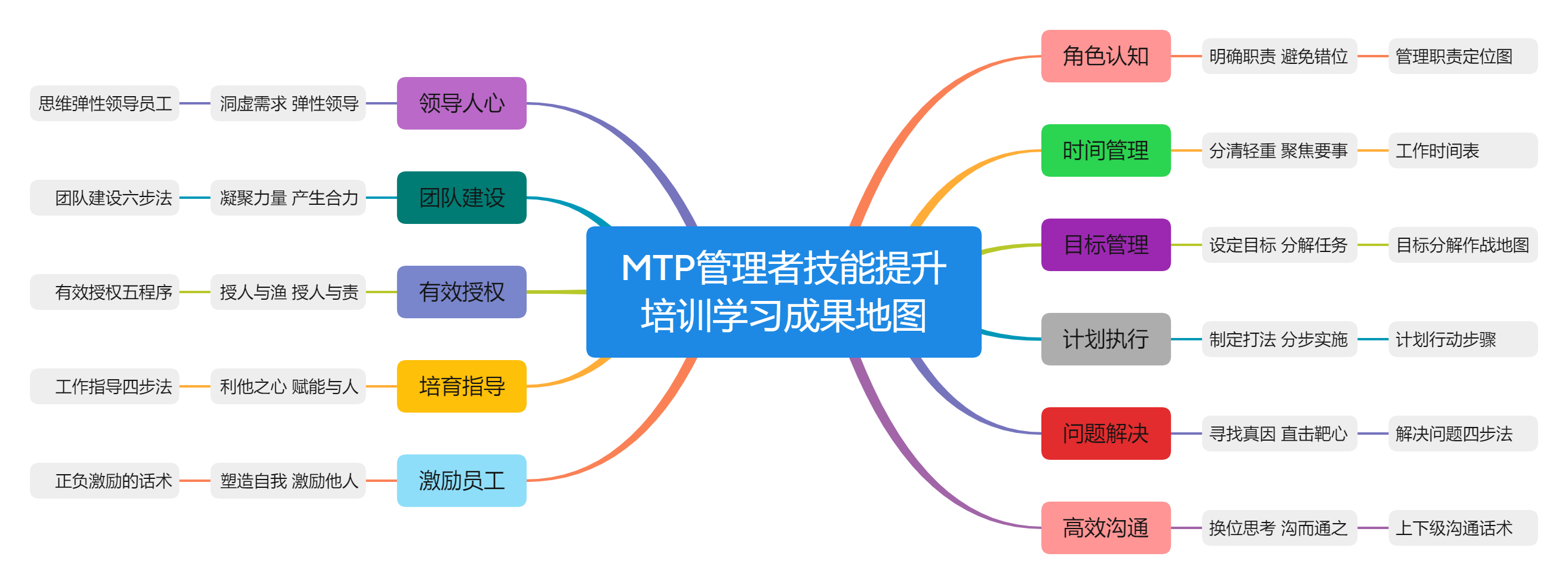 MTP中层管理者技能提升是系列模块课程,最终呈现的内容可以根据客户实际情况做裁剪。