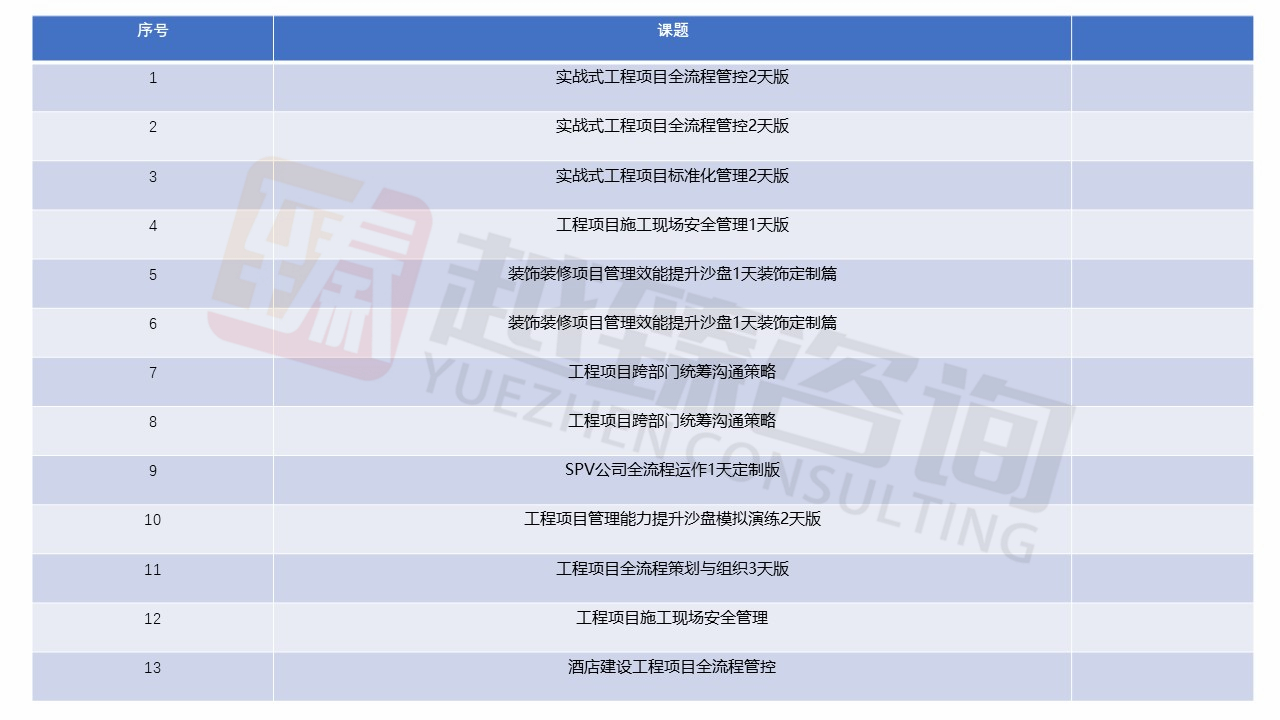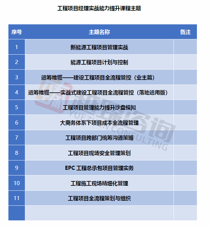 擅长领域:项目管理团队效能提升、企业后备人才培育、EPC工程项目及常规项目管理工具落地应用、项目管理沙盘推演、施工现场精细化管理、工程现场跨部门统筹沟通、施工现场6S管理