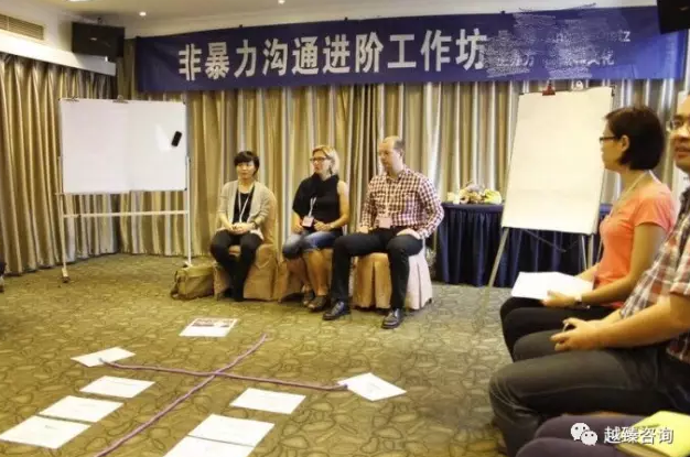 回头想想我们的培训,对于场景的设计是不是用心了,让学员一进入教室就受到了培训的刺激、从第一眼就开始了潜移默化的培训输入了。5月24日至25感日在南京参加非暴力沟通进阶课程,就强烈感觉老外是非常重视培训场景的,一进入培训场地,你首先看到是一盆鲜艳的插花,散发着馨香,在地上用两根绳子构成十字,绳子两边摆放着5张卡片。当时你会想我进入nvc这个场景,带给我的是看到生命彼此的美好,从现在开始。
