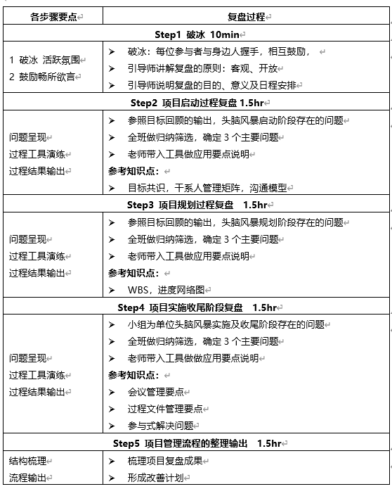 1.项目管理培训+复盘+经验萃取+辅导方案设计要点