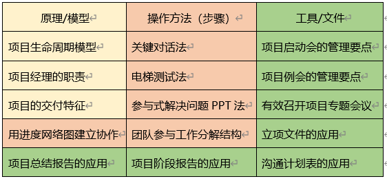 a)理解项目思维、建立正确角色认知:本节目的是突破学员过去被动完成任务的项目管理认知,树立目标驱动的项目价值观,并通过项目经理职责摆正学员项目中的角色担当;